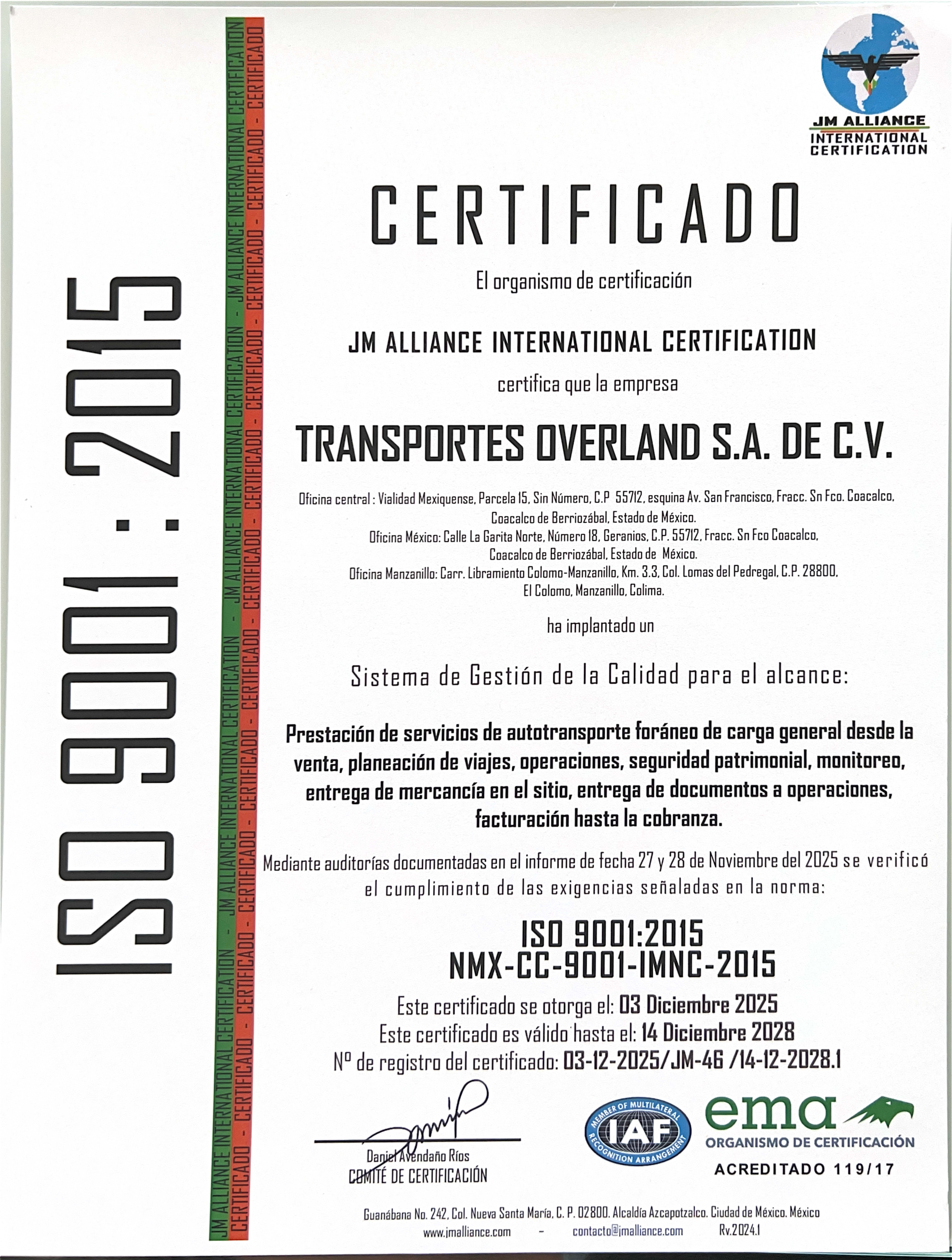 BRINDAR DE FORMA SEGURA Y EFICIENTE EL TRASLADO DE MERCANCIA CONFORME AL SGC MEDIANTE NUESTRA EXPERIENCIA, SERVICIO Y COMPROMISO, CUMPLIENOD LOS ESTANDARES NORMATIVOS, REGLAMENTARIOS Y LEGALES REQUERIDOS ATRAVEZ DE LA MEJORA CONTINUA DE NUESTROS SERVICIOS Y PROCESOS, CON EL FIN DE SATISFACER LAS NECESIDADES DE NUESTROS CLIENTES.